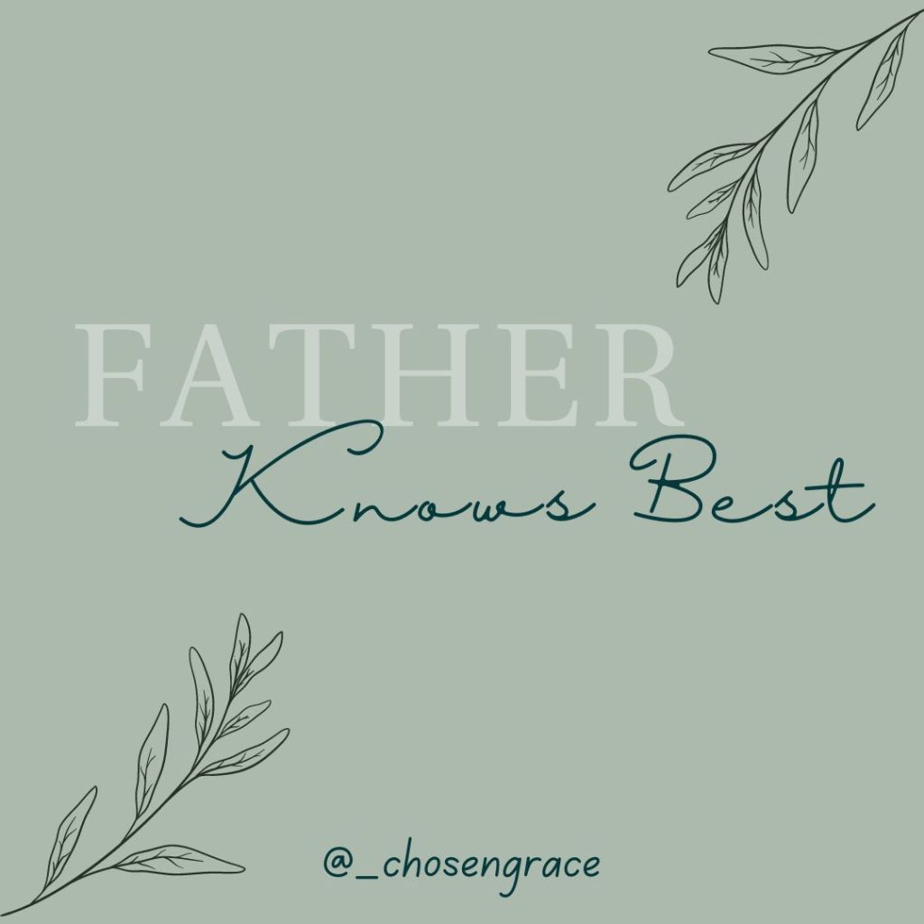 As I pondered on that moment throughout the day, the Lord began to minister to me. He said, “In the same way you’re mom was right- so am I. Remember, Father always knows best.”